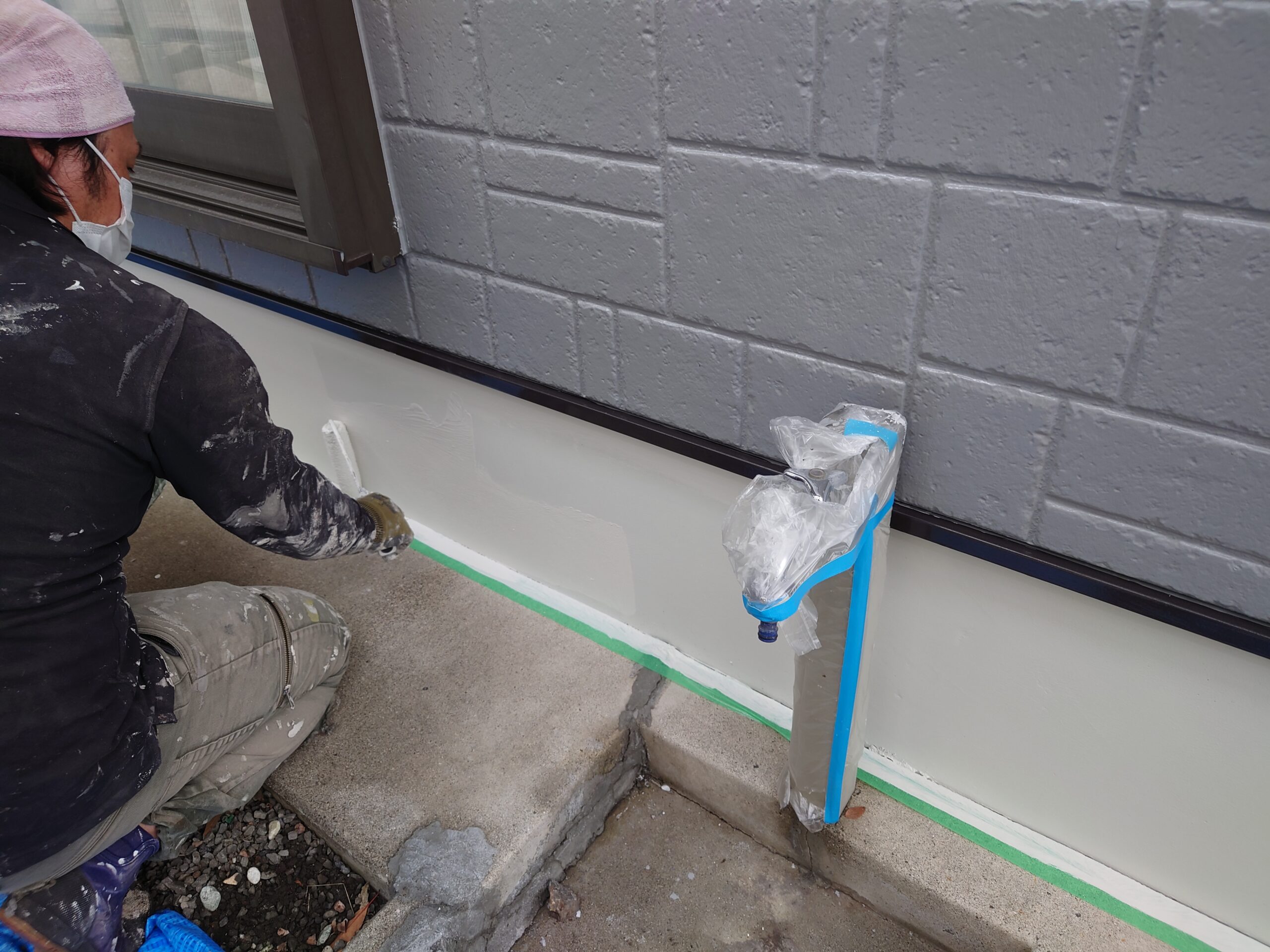 又、基礎クラックもご自身で補修されていましたが補修痕が気になるとのことでクラック補修後、基礎用塗料で綺麗に仕上げました。