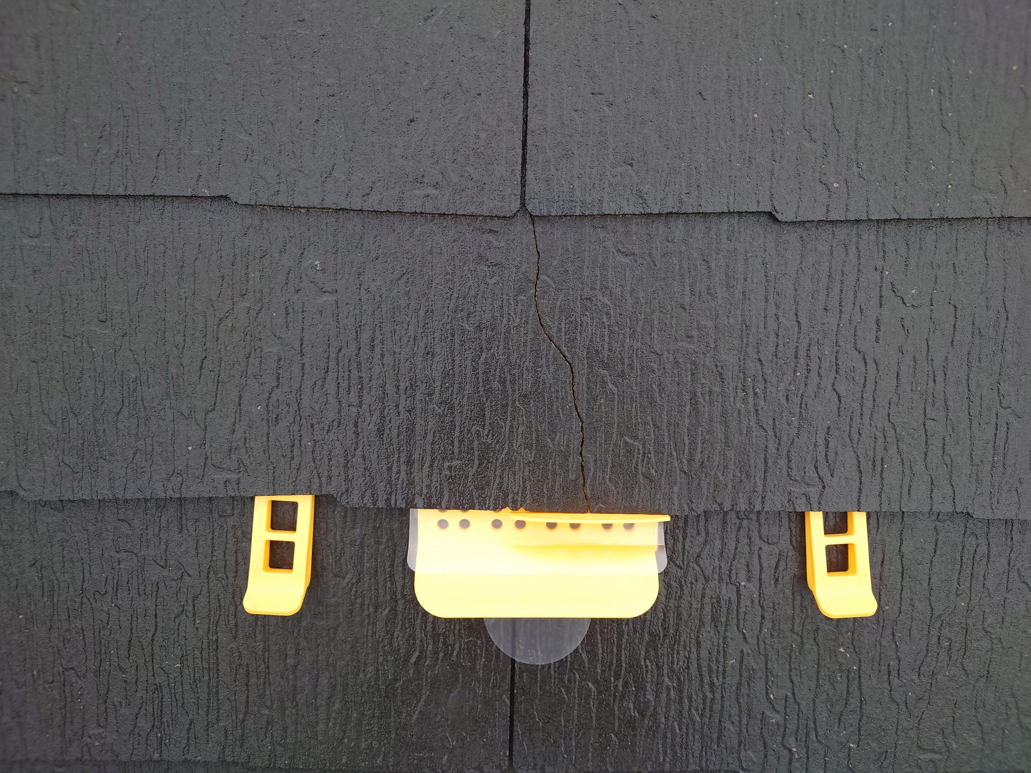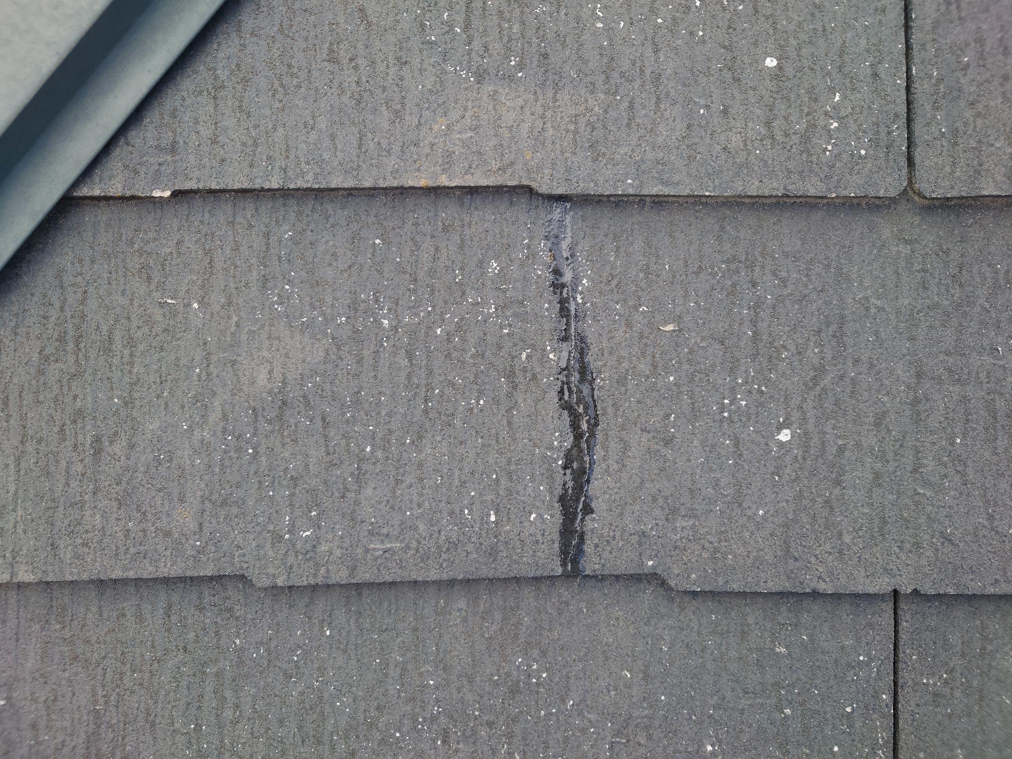 屋根のひび割れが多数ありましたため、通常は新品へ差し替えを行うことが多いですが、差し替えでは釘留めではなくコーキング留めによる施工になり強度不足や